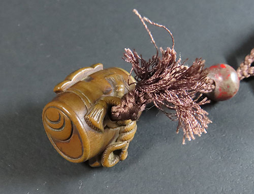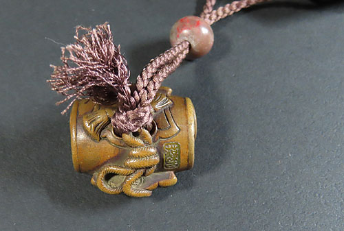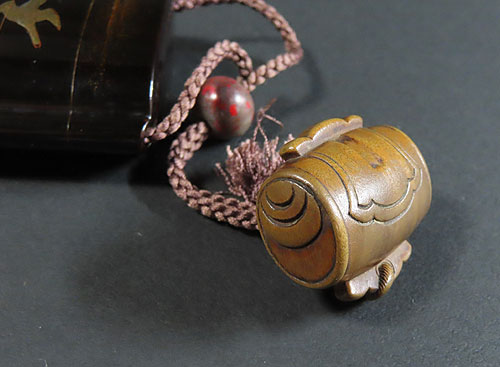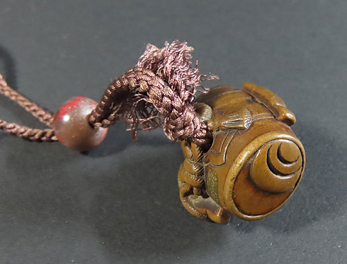 細工が面白い根付で、昔の 職人技 が素晴らしく、木味 の温もりが伝わる 逸品 です。