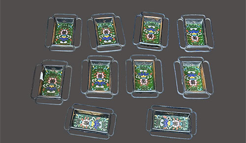 このような 七宝焼 や 象嵌細工 や彫金細工が施された引手や釘隠しは高価買取させて頂きます。