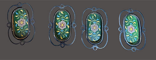 このような 七宝焼 や 象嵌細工 や彫金細工が施された引手や釘隠しは高価買取させて頂きます。