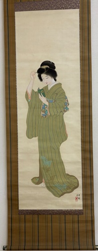 明治時代末から昭和時代まで多くの著名な作家も描かれており、美人画の掛軸も数多く残されております。