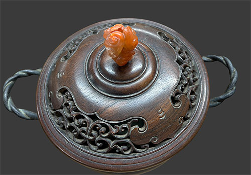 中国美術の作品らしく、面白い火屋が付いた香炉で中国骨董品の香炉ならではの火屋です。