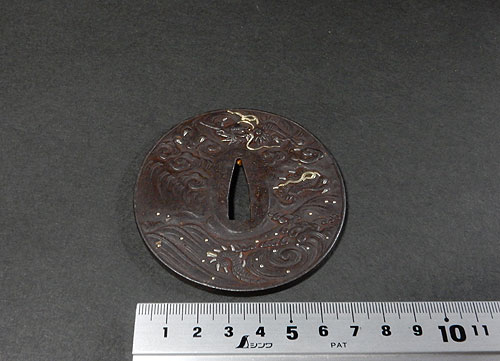 波に龍の図柄が丁寧な彫金細工と象嵌細工で、表現されております。