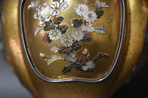 材質は木地に漆が施されており、珊瑚 や螺鈿を用いた、非常に繊細な芝山蒔絵で、昔の 職人技 が生かされた 逸品 です。