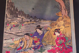 写真3枚あります。くわしくはこちら 明治時代に活躍した浮世絵師、昇斎 一景(しょうさい いっけい)の骨董品の 浮世絵「東京名所三十六戯撰 王子」です。この作品は江戸時代の 骨董品 の浮世絵 版画 で、美人画の部類の作品です。同じ 美人画 でも 大首絵 は、主に江戸時代に描かれた骨董品の浮世絵の様式のひとつで、歌舞伎役者や遊女の美人画、評判娘の美人画などを半身像や胸像として捉えて描いた骨董品の浮世絵版画で高価買取させて頂きます。この浮世絵版画は三枚続きの作品ですが、その内の一部だけの浮世絵版画で買取価格も安くなります。この骨董品の浮世絵版画のように一般的には赤色のきつい版画は明治の浮世絵や 木版画 に多く見られます。 この美人画の版画は、競り市やオークションで買い受けた美人画の版画ではありません。直接お客様より入荷した、うぶ荷と呼ばれる貴重な蔵出しの作品で、現状のまま販売しております。お店で販売している安価な品物で、ホームページ上では販売しておりませんが紹介させて頂きます。