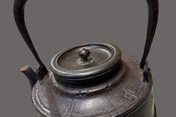 写真5枚あります。くわしくはこちら 明治から大正時代頃の骨董品で 茶道具 の 煎茶道具 で使う  鉄瓶 で買取しました。さすが 古い時代 の骨董品 で、丁寧に作られた日本の昔の 職人技 が見られる骨董品の鉄瓶で買取ました。骨董品の鉄瓶で、鋳造 品の型流しで作られた鉄瓶ですが、周りに模様な 図柄 もあり煎茶道具として茶道具では人気で紹介しています。この骨董品の鉄瓶は、全体的に 重量感 がありご覧のように面白いデザインの鉄瓶です。茶道具として長年使われてきた痕がある煎茶道具の骨董品の鉄瓶ですが、ひび割れ等無く綺麗な 保存状態の骨董品の鉄瓶です。 鉄瓶の効用 鉄瓶とは江戸時代に元々茶道具として考案されましたが、明治時代頃の骨董品の鉄瓶は一般的には民具として復旧し、煎茶道具として昔は各家庭に一つはあったものです。鉄瓶は日本では余り重要視されていませんが、漢方薬を大切にしている中国では骨董品の昔から日本の煎茶道具と同じで、鉄分の吸収が良いと日本の煎茶道具に当たる中国茶の御道具として使われてきました。