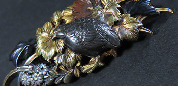 金工作品の刀装具の骨董品出張買取依頼で、素晴らしい骨董品の金工作品で目貫をお譲り頂きました。