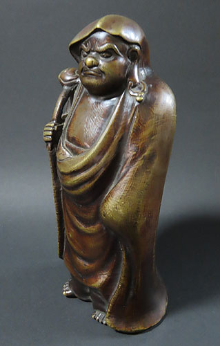 宣徳 銅器 の達磨大師の 置物 です。 この作品は 保存状態 も良く大切に飾られていた作品だと思われます。 顔の表情も良く、面白い 金工作品 です。 日本の作品で、江戸時代から明治時代に作られた逸品です。 このような宣徳銅器で、作品の裏側に宣徳年製と描かれた 中国美術 の作品ならアジアのお客様に人気があり高価買取出来ます。 江戸時代から明治時代に作られた作品は、共箱 や合わせ箱が無くても彫金細工や 象嵌細工 の出来の良い 逸品 は人気があります。