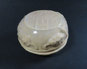 お 茶道具 で使う可愛らしい香合で煎茶道具や抹茶道具に使われ買取ました。小品の茶道具ですが丁寧に作られており、煎茶道具 として昔の 職人技 が光る 逸品 で買取ました。面白い香合で、お香を入れる入れ物ですが、図柄 が楽しく丁寧に作られた 香合 で、煎茶道具としてはでは人気の茶道具です。ひび割れや欠け等無く、保存状態 の良い煎茶道具の茶道具で綺麗な 共箱 が付いております。この煎茶道具の香合は、競り市やオークションで買い受けた作品ではありません。
