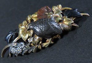 金工作品の刀装具の骨董品出張買取依頼で、富山県砺波市のお客様より素晴らしい骨董品の金工作品で目貫をお譲り頂きました。