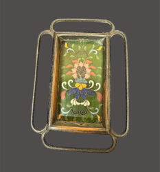 この品物は骨董品の襖の引手で中央は 七宝焼 で買取ました。しっかりした作りで 重量感 もあり同じ七宝焼のデザインで 引手 が一対あり買取させて頂きました。このような形の引き手は珍しく、明治時代の 骨董品 の引手で中の七宝焼も華やかな 図柄 です。素晴らしい彫金細工で昔の 職人技 が冴える七宝焼の引手です。華やかな 図柄 で丁寧に仕上げらた分厚い金属の七宝焼きで、重量感 があり、さすが昔の引手と思わせる綺麗な品物です。